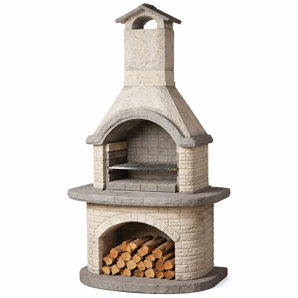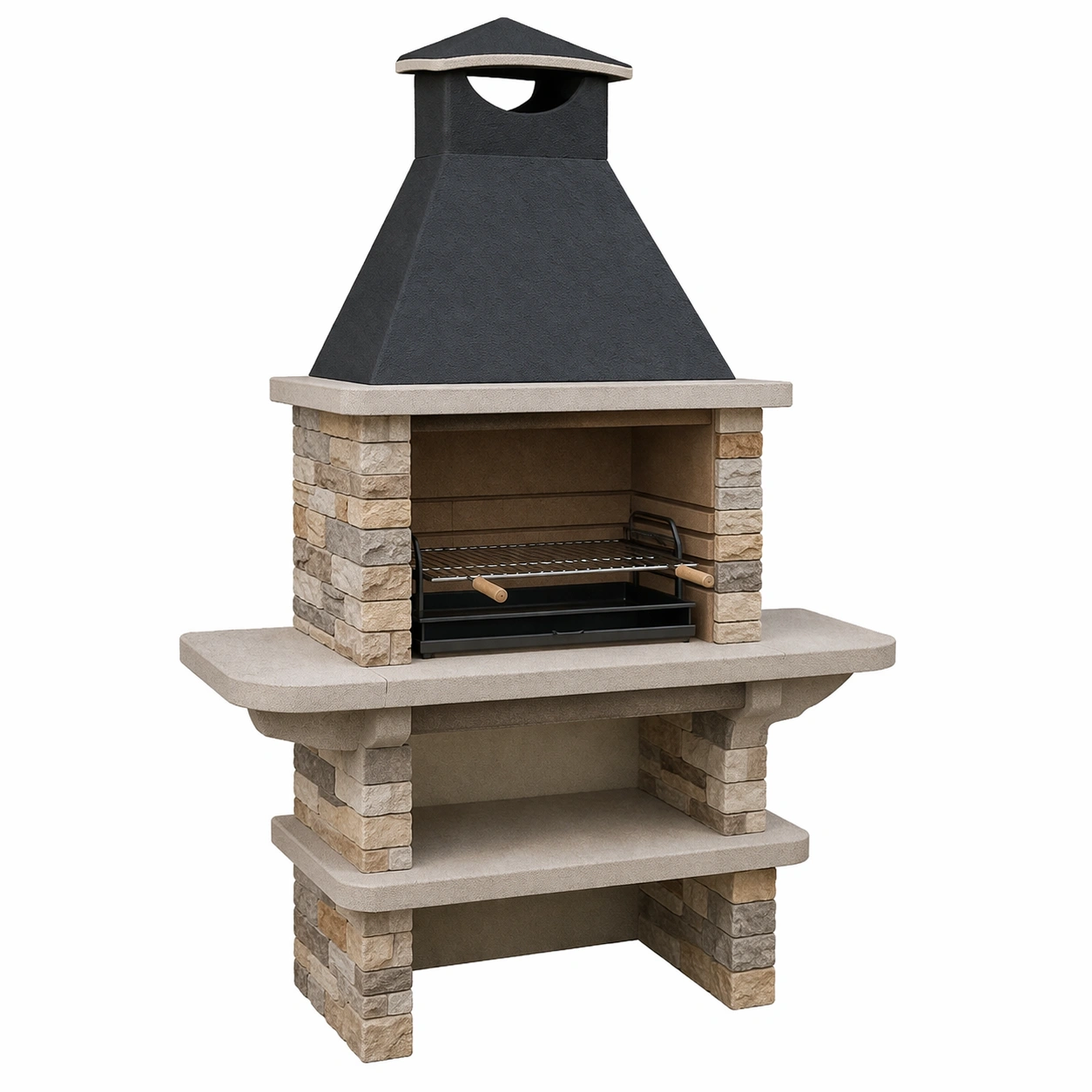 Barbacoa de hormigón y acero inoxidable para exterior gris beige