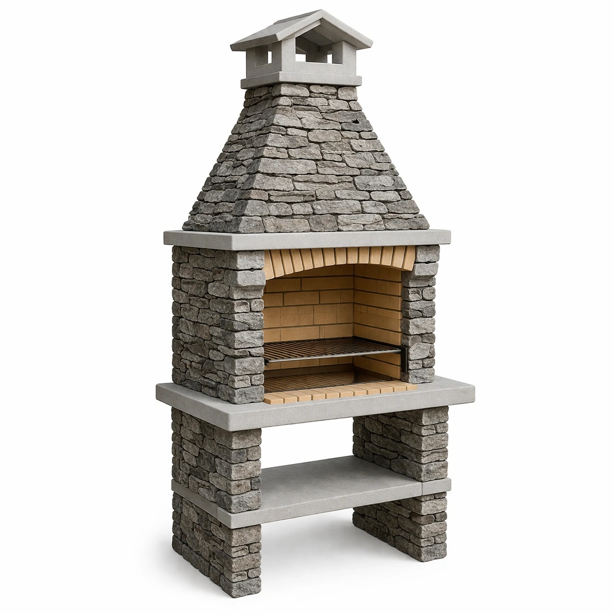 Barbacoa de cemento y piedra para exterior 180x65x200 cm