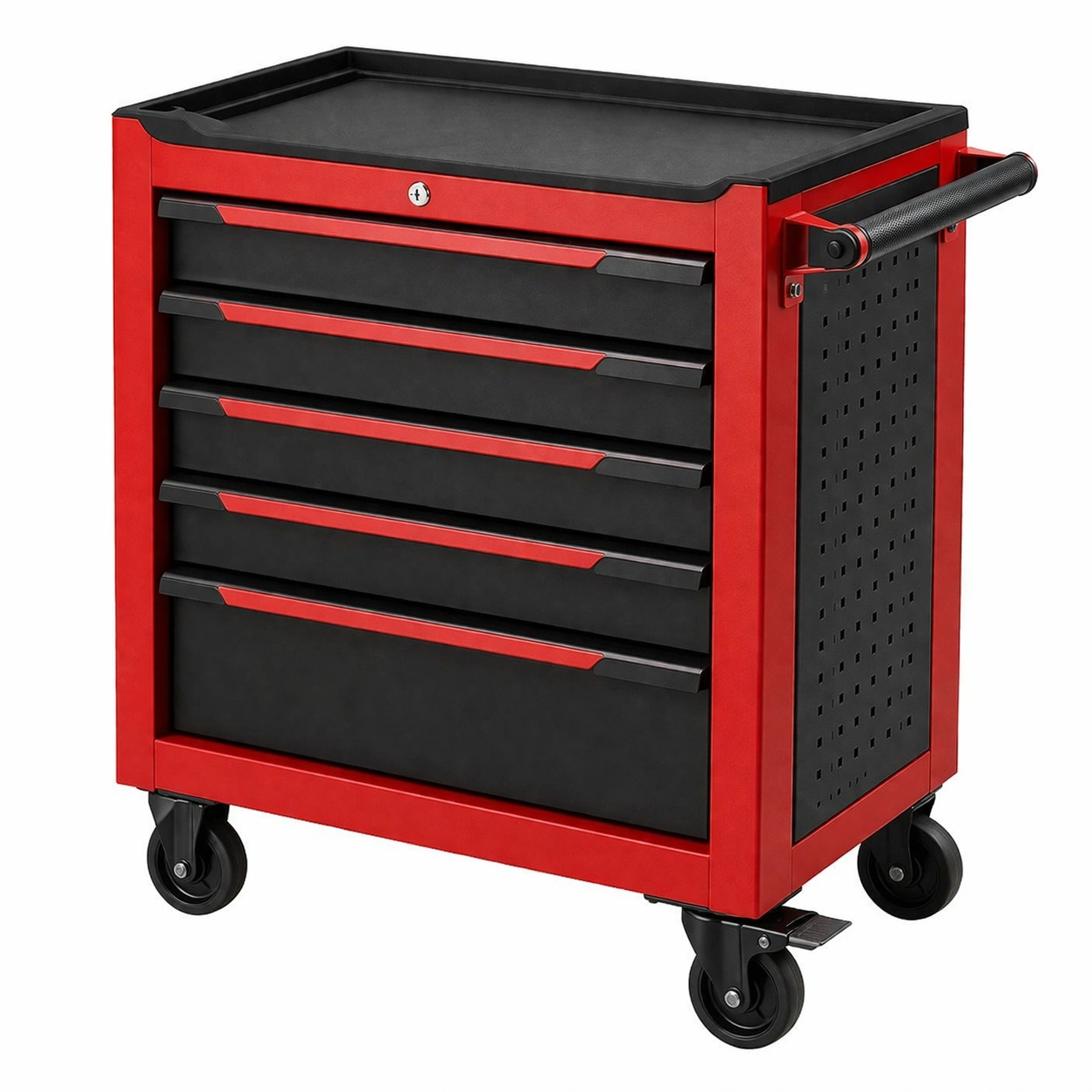 Carro de herramientas metálico con 5 cajones y ruedas negro rojo