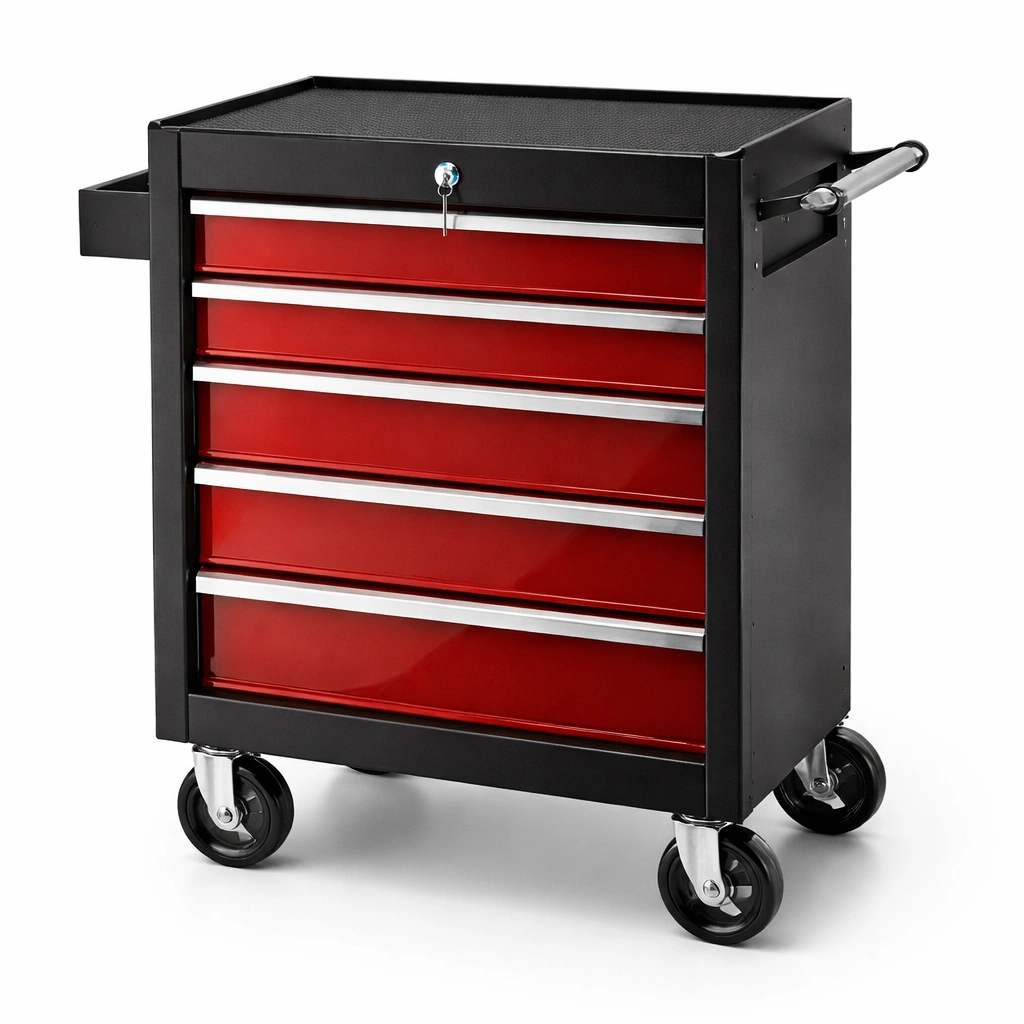 Carro de herramientas de acero con 5 cajones negro rojo
